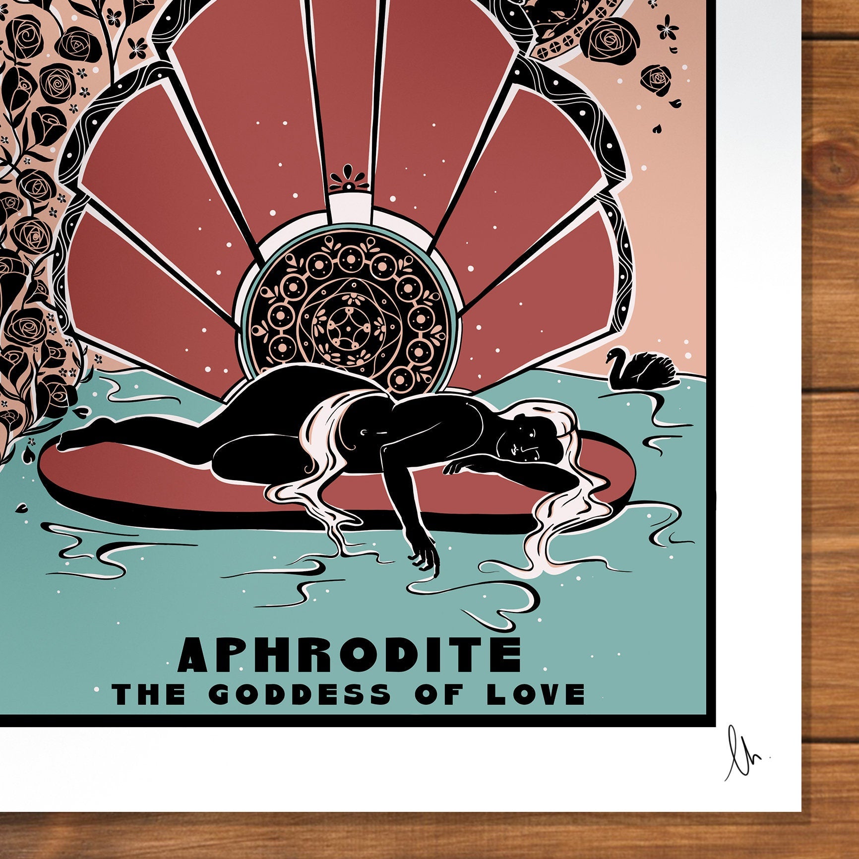 Aphrodite, The Goddess of Love and Beauty. Inspired by Art Nouveau designs, this is the perfect gift for a special someone special or just a great way for a Mythology Lover to add some colour to their walls!