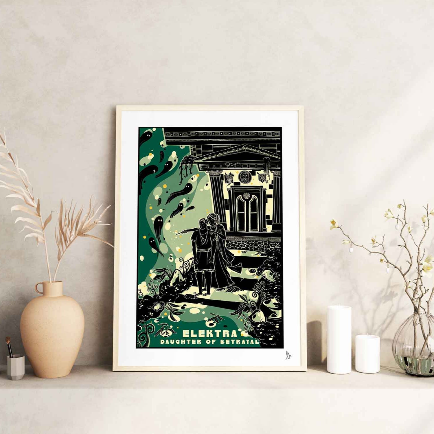 The cursed house of Atreus strikes again as Elektra plots her revenge on her mother, using her brother as a weapon for revenge. This is the perfect gift for a fan of Greek mythology, or a wonderful way for a mythology enthusiast to bring a touch of homey comfort to their walls!