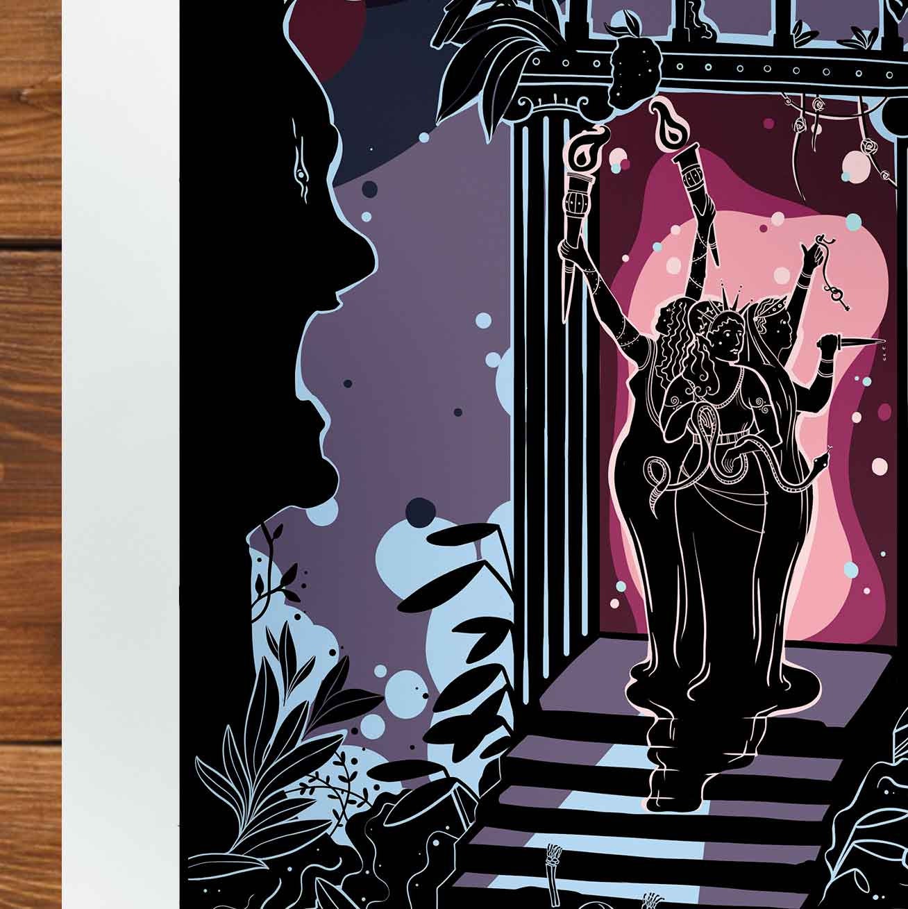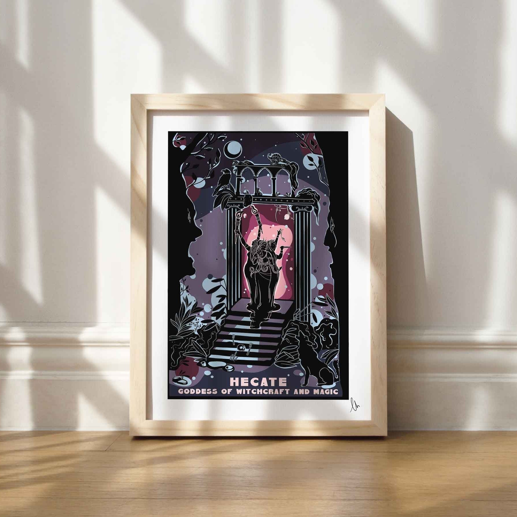 Celebrating Hecate, The Goddess of Witchcraft and Magic! She is know for watching over crossroads and pathways between two places, as well as a being the summoner of souls. This is the perfect gift for a fan of Greek mythology, or a wonderful way for a mythology enthusiast to bring a touch of homey comfort to their walls!