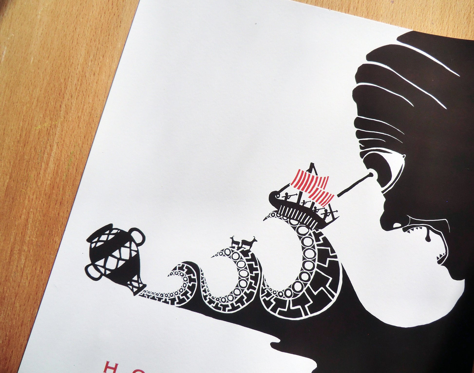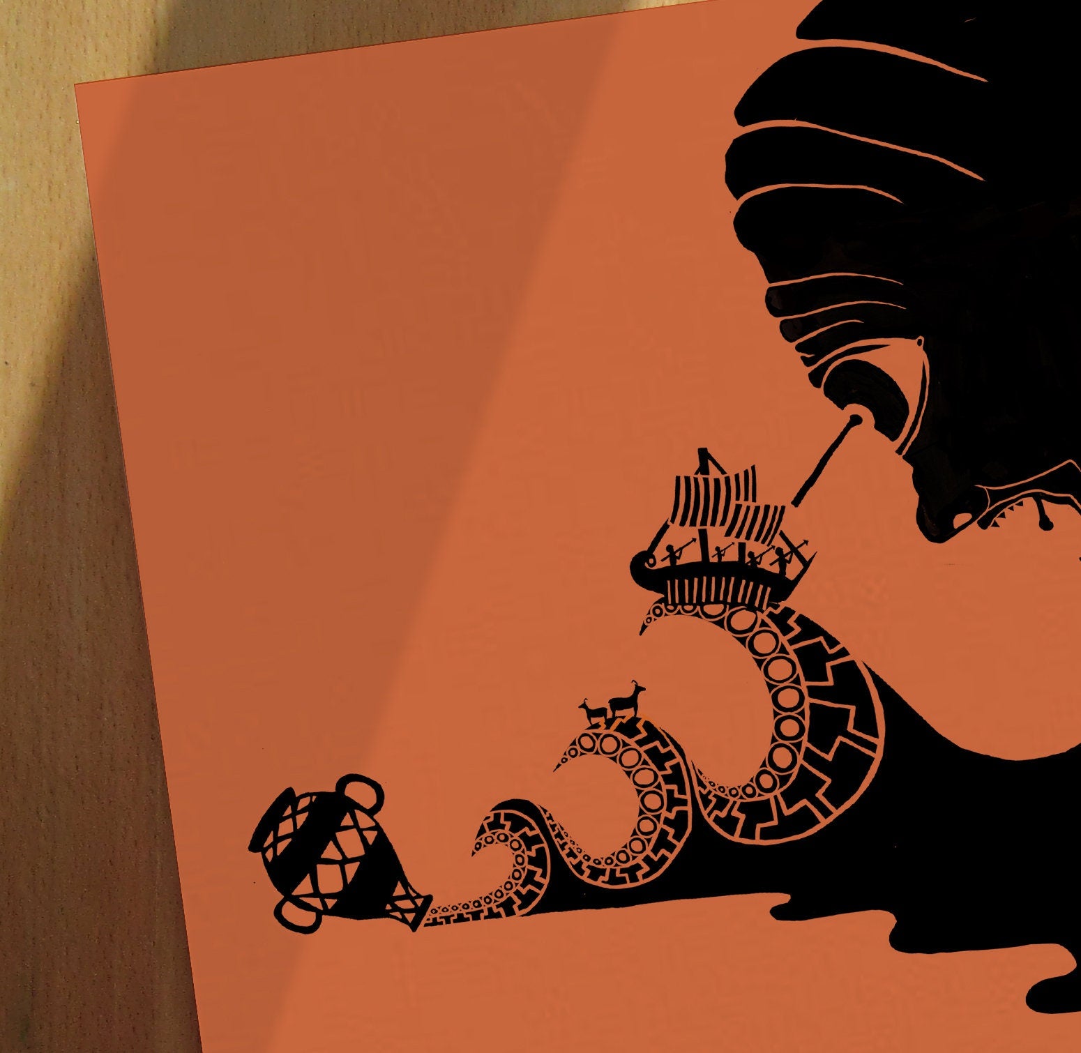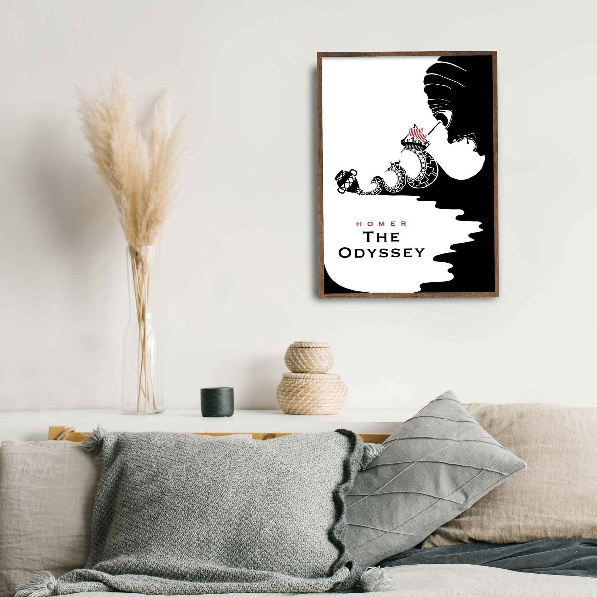 For book lovers and fans of classic literature, this bold and graphic print design is a celebration of Greek mythology, showing Odysseus' escape from Polyphemus.